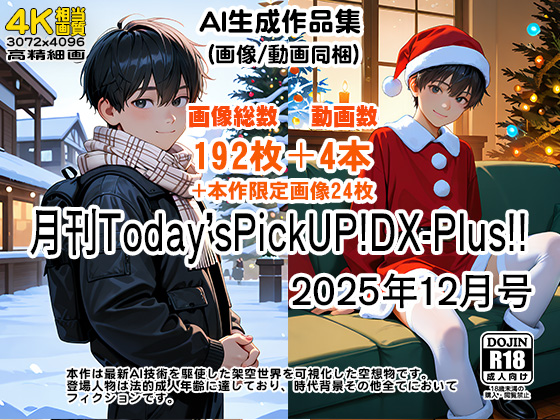 (*1) 本作品は『月刊Today'sPickUP!DX 2025年12月号』と内容はほとんど同じですが、当サイト独自の隠蔽処理を施しているため、自主規制の厳しい他の大手販売サイトでは取り扱いができません。そのため、当サイト限定での販売となっております。なお、隠蔽処理は国内法に準拠したもので、安心してご覧いただける内容です。また、当商品には限定コンテンツ『架空少年-AI(かくうしょうねんあい) vol.2』が同梱されています。